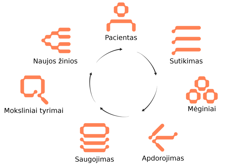 Sutikimo paėmimas – Jums sutikus prisijungti prie Biobanko veiklos, Jums bus duodamas pasirašyti Informuoto asmens sutikimas dalyvauti Biobanko veikloje. Nuo to momento, kai Jūs pasirašote sutikimą, Jūs tampate Biobanko veiklos dalyviu.
