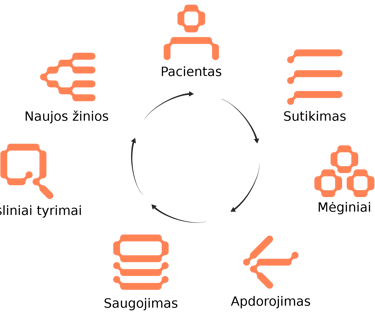 The Biobank is authorized to obtain and collect personal health data from Santaros Klinikos, information systems managed and processed by Santaros Klinikos, medical (health) records from other healthcare institutions and their managed information systems, and other state registers and/or state information systems (e.g., the Cancer Registry, the Electronic Health Services and Cooperation Infrastructure Information System, the Public Health Safety Information System, the State Register of Deaths and Causes of Death, etc.).